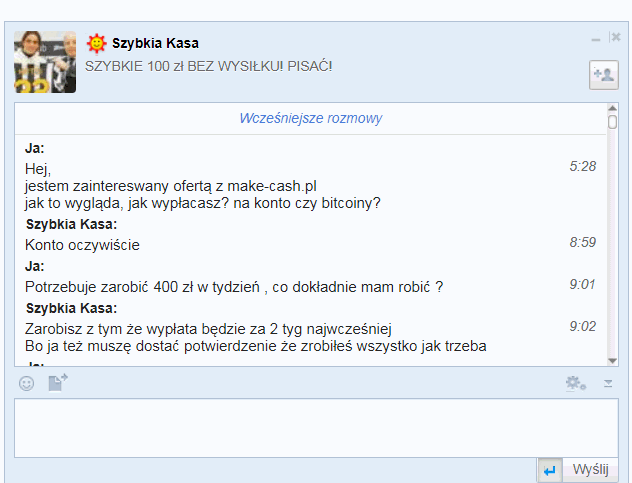 RE: 100 zł za rejestrację! Fundico - pożyczki społecznościowe - Morze1 - 13-07-2018 17:02 (13-07-2018 16:59)KubenQ napisał(a): Siema żaden meil nie przychodzi od wczorajA pisałeś do nich coś ogółem? RE: 100 zł za rejestrację! Fundico - pożyczki społecznościowe - milosz998 - 13-07-2018 17:03 To jest to że jest weekend i teraz czekać 3 dni i myśleć czy wyślą kasę czy nie. Ja wątpię że oni poleconych ogarną, a mam ich z 10. RE: 100 zł za rejestrację! Fundico - pożyczki społecznościowe - hortex - 13-07-2018 17:06 (13-07-2018 17:03)milosz998 napisał(a): To jest to że jest weekend i teraz czekać 3 dni i myśleć czy wyślą kasę czy nie.Ja jeszcze liczę, że przyjdzie dziś o 18:15 do mBank :-D RE: 100 zł za rejestrację! Fundico - pożyczki społecznościowe - milosz998 - 13-07-2018 17:20 Nie przyjdzie ![]() Ja nie dostałem. Też mbank a o 9 rano już pisali że wysyłają. Bardziej jednak martwie się o poleconych. RE: 100 zł za rejestrację! Fundico - pożyczki społecznościowe - hortex - 13-07-2018 17:21 Takie coś wyłapane w sieci... https://faraon24.pl/szybka-kasa-milosz998/ RE: 100 zł za rejestrację! Fundico - pożyczki społecznościowe - dominikstawniak - 13-07-2018 17:22 Teraz dostałem e-mail, że system wypłata tylko jak polecony zainwestuje min. 50 zł. Trochę słabo, ale mimo to się opłaca. Niestety nie rozumiem na czym polegać ma inwestycja, czy wystarczy, że złoże ofertę pożyczki tam? RE: 100 zł za rejestrację! Fundico - pożyczki społecznościowe - rachman - 13-07-2018 17:26 (13-07-2018 17:21)hortex napisał(a): Takie coś wyłapane w sieci... Jak się podejrzewa przestępstwo to się zgłasza a nie publikuje. Nie zgłoszenie też może być karalne, do tego dane osobowe publicznie pokazywane,... Bawić się w detektywa to z głową a nie